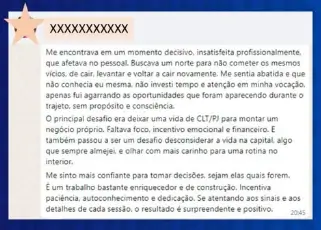 “Consegui obter diversas respostas e algumas questões de planos de como tratar as questões profissionais e futuro da minha carreira”